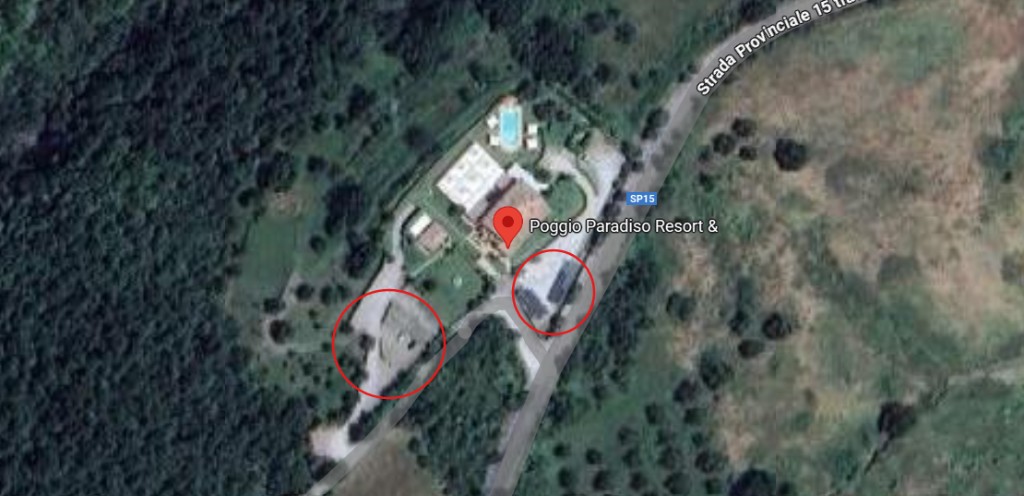 A Poggio Paradiso ci sono due parcheggi, segnati dai cerchi rossi nella foto qui sotto.
